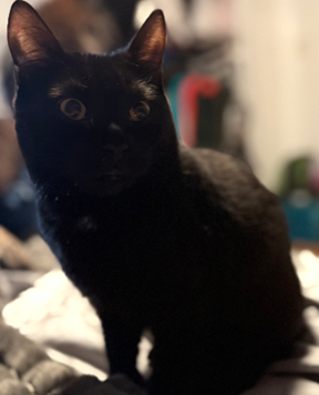 This little star truly lives up to her name! Nova is a sleek black kitten with a perfect white star shining on her chest — a mark that suits her bright and loving personality. Born July 2025 and found outside the Witty Whisker Café in St. Augustine, Nova has spent the last few months blossoming in her foster home. She’s become a bundle of love and joy — trilling and purring her way into everyone’s hearts. Nova adores attention and will happily nudge your hands (and even your elbows!) for more pets.